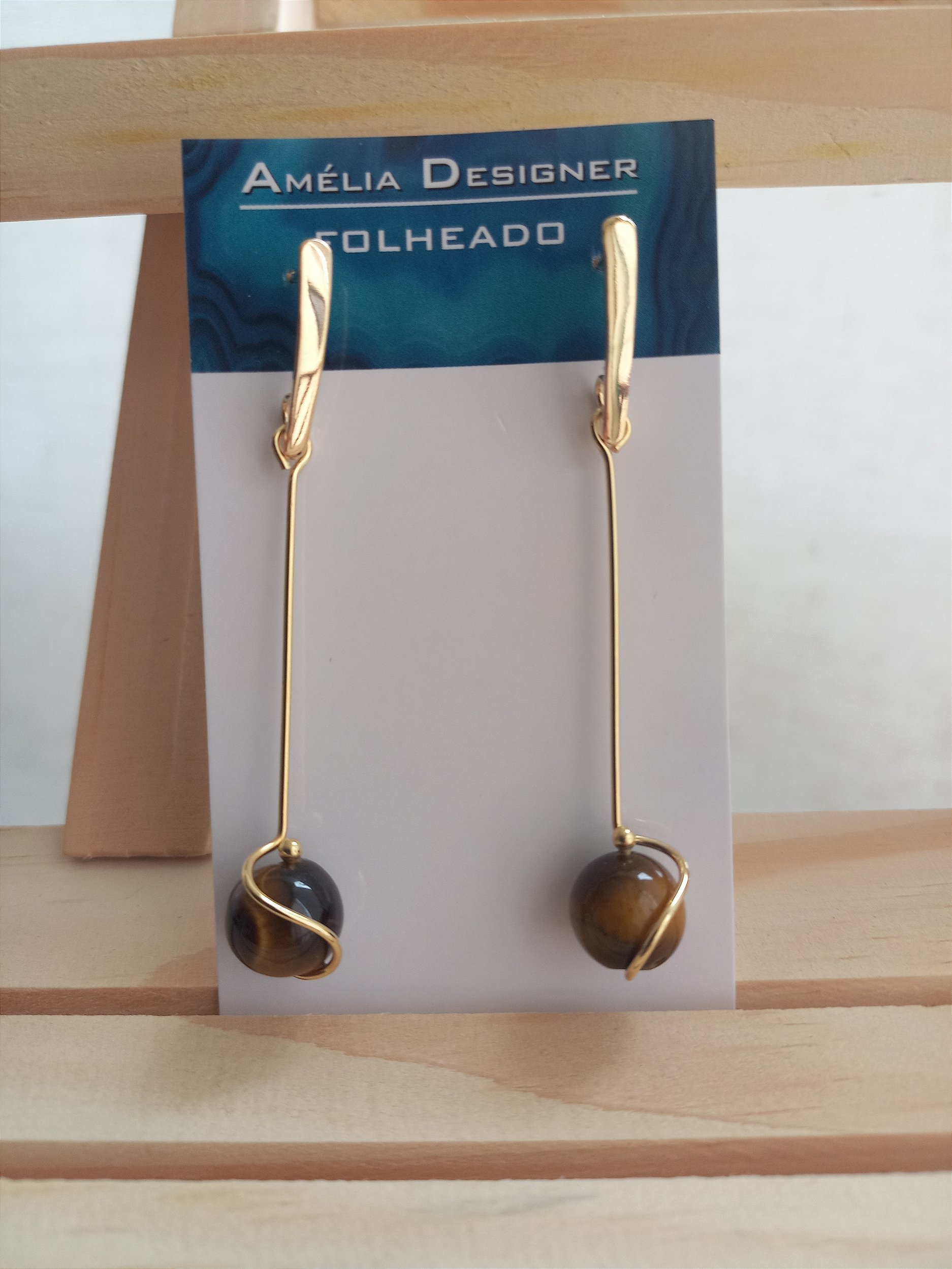 Brinco longo de olho de tigre